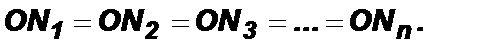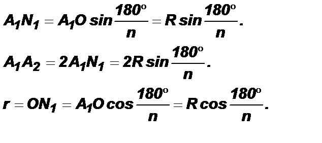 Дано: А1А2…Аn – правильный многоугольник. Доказать: 1) существует окружность с центром О, вписанная в многоугольник А1А2…Аn; 2) эта окружность единственная. Доказательство: 1) Из доказательства предыдущей теоремы следует, что серединные перпендикуляры 2) Докажем, что эта вписанная окружность единственная. Предположим, что наряду с рассматриваемой окружностью с центром в точке О и радиусом ОN1 существует и другая вписанная в многоугольник окружность с центром в точке О1. Тогда точка О1 равноудалена от сторон многоугольника и лежит на каждой из биссектрис его углов, а следовательно, совпадает с точкой О пересечения этих биссектрис. Радиус этой окружности равен расстоянию от точки О до сторон многоугольника, т. е. равен ОN1. Таким образом, вторая окружность совпадает с первой.