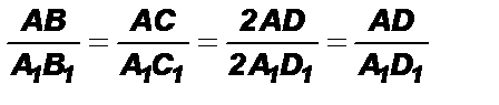 Так как DABC~DA1B1C1, то ÐA =ÐA1, по свойству медиан. DABD~DA1B1D1, так как ÐA =ÐA1 и Þ