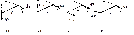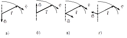 ?50. Какой из рисунков правильно отражает связь между линейной и угловой скоростями точки? 51. Какие соотношения соответствуют связям между линейными и угловыми кинематическими характеристиками движения? а) 52. Как связаны между собой элементарные линейное и угловое перемещения точки, движущейся по окружности? б) 53. Как направлен вектор угловой скорости секундной стрелки часов, когда Вы смотрите на них?