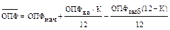 Где ОПФнач – стоимость ОПФ на начало года. ОПФвв – стоимость вводимых ОПФ. ОПФвыб – стоимость выбывающих ОПФ. К – количество месяцев функционирования ОПФ.