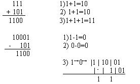 Правило выполнения операции сложения одинаково для всех систем счисления: если сумма складываемых цифр больше или равна основанию системы счисления, происходит перенос единицы в следующий слева разряд. При вычитании, если необходимо, делают заем. Для составления программы, предназначенной для решения на ЭВМ какой-либо задачи, требуется составление алгоритма ее решения. Алгоритм — это точное предписание, которое определяет процесс, ведущий от исходных данных к требуемому конечному результату. Алгоритмами, например, являются правила сложения, умножения, решения алгебраических уравнений, умножения матриц и т.п. Слово алгоритм происходит от algoritmi, являющегося латинской транслитерацией арабского имени хорезмийского математика IX века аль-Хорезми. Благодаря латинскому переводу трактата аль-Хорезми европейцы в XII веке познакомились с позиционной системой счисления, и в средневековой Европе алгоритмом называлась десятичная позиционная система счисления и правила счета в ней. Свойства адгоритма: Результативность означает возможность получения результата после выполнения конечного количества операций. Определенность состоит в совпадении получаемых результатов независимо от пользователя и применяемых технических средств. Массовость заключается в возможности применения алгоритма к целому классу однотипных задач, различающихся конкретными значениями исходных данных. Способы описания - Словесно – формульный (записывается в виде текста с формулами по пунктам, определяющим последовательность действий);