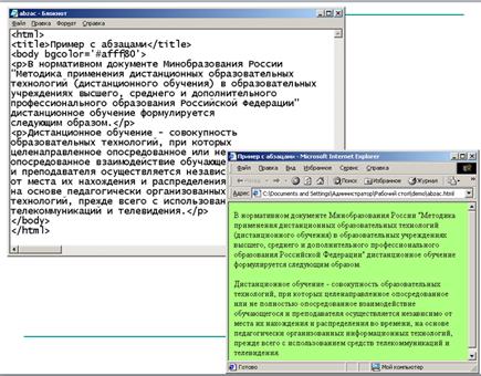 Основным форматом представления документов в сети Интернет является язык гипертекстовой разметки HTML. HTML – это определенная совокупность правил (тегов), по которым оформляется документ. Теги показывают Интернет-браузеру, как следует отображать текст на Web-страничке.