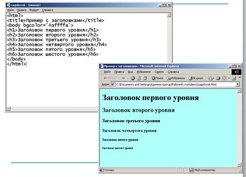 Заголовки. Заголовки имеют важное значение в структурировании HTML-документа и являются одними из самых употребляемых в языке разметки текста. Их назначение – показать структуру документа. HTML располагает шестью уровнями заголовков. <h1> … </h1> … <h6> … </h6> Самый верхний уровень <h1>, нижний - <h6>. Все эти теги также имеют параметр align.