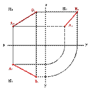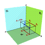 Для определения положения прямой в пространстве существуют следующие методы: 1.Двумя точками (А и В). Рассмотрим две точки в пространстве А и В (рис. 15). Через эти точки можно провести прямую линию. Для того чтобы найти проекции отрезка [BA] на плоскости проекций необходимо найти проекции точек А и В и соединить их прямой. Каждая из проекций отрезка на плоскости проекций меньше самого отрезка: [A1B1]<[BA]; [A2B2]<[BA;] [A3B3]<[BA].