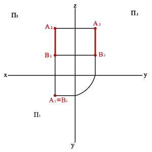 3.2. Профильно проецирующая прямая - АВ (рис.23) xАx–B≠ü yАy–B=ý zАz–B=þ,