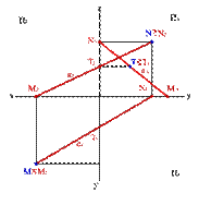 Следом прямой линии называется точка (рис. 26), в которой прямая пересекается с плоскостью проекций (так как след - точка, принадлежащая одной из плоскостей проекций, то одна из её координат должна быть равна нулю). Горизонтальный след - М (zM)=- точка пересечения прямой с горизонтальной плоскостью проекций. Фронтальный след - N y(N)= - точка пересечения прямой с фронтальной плоскостью проекций. Профильный след - Т (xТ)= - точка пересечения прямой с профильной плоскостью проекций.