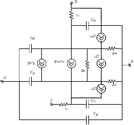 Рис. 2.6 - Малосигнальная эквивалентная схема п-МДП транзистора