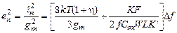 KF - коэффициент шума Первый член в правой части описывает тепловой белый шум [А2/ Гц]. Второй член описывает фликкер-шум. Его спектральная плотность пропорциональна Практически часто используется выражение шумового напряжения: