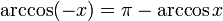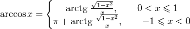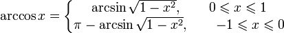 Дана функция y = cos x. На всей своей области определения она является кусочно-монотонной, и, значит, обратное соответствие y = arccos x функцией не является. Поэтому мы рассмотрим отрезок, на котором она строго убывает и принимает все свои значения — [0;π]. На этом отрезке y = cos x строго монотонно убывает и принимает все свои значения только один раз, а значит, на отрезке [0;π] существует обратная функция y = arccos x, график которой симметричен графику y = cos x на отрезке [0;π] относительно прямой y = x.