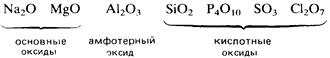 Молекулярные оксиды р-элементов, например диоксид углерода и триоксид серы, обычно обладают кислотными свойствами. Закономерное изменение основных свойств с переходом к кислотным свойствам наглядно проявляется у оксидов элементов 3-го периода.