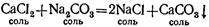 З.В водных растворах соли могут реагировать между собой. Если слить вместе водные растворы хлористого кальция CaCl2 я углекислого натрия Na2CO3 TO тотчас же образуется белый осадок нерастворимого в воде углекислого кальция СаСО3, а в растворе — хлористый натрий: