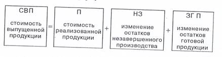 §5. Оценка стоимости выпущенной продукции Оценка стоимости выпушенной продукции проводится на основе данных о стоимости реализованной продукции, изменениях стоимости незавершенного производства и запасов готовой продукции по следующий формуле: