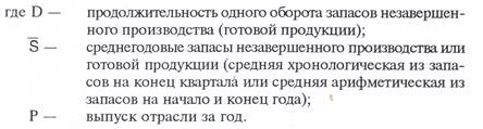 Следует обратить внимание на то, что все индексы должны быть рассчитаны к одному и тому же базисному периоду. Для расчетов используются индексы цен производителей в соответствующих отраслях. При выборе периода, к которому должны относиться эти индексы, важно учитывать время нахождения продукции в запасах. Его устанавливают расчетным путем, приравнивая время нахождения в запасах ко времени продолжительности одного оборота запасов незавершенного производства и готовой продукции по формуле:
