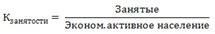 Коэффициент занятости Коэффициент занятости показывает соотношение числа занятых человек в экономике к числу экономически активного населения.