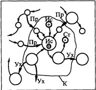 3. Основные балансовые соотношения(ОБС) для выбранных пространственных контуров и их назначение. Какие из потоков субстанции пересекают границы пространственного контура? Привести пример записи ОБС с расшифровкой входящих в них составляющих. Ответ: Среди разнообразных типов соотношений, встречающихся в химической технологии, часто используются уравнения баланса. Эти уравнения нередко выступают как математическое выражение законов сохранения какой-нибудь субстанции (массы, количества движения, теплоты, какого-либо вещества). Однако балансовые соотношения можно записать и для таких ситуаций, когда законы сохранения не действуют. Так, баланс может быть записан для одного извеществ, участвующих в химической реакции: здесь сохранения (скажем, массы или числа молей) именно этого вещества — нет, так как оно может исчезать или возникать в ходе химической реакции. Таким образом, понятие баланса шире, нежели закона сохранения. + Пр — Ух + Ис — Ст = Нак(Рез).