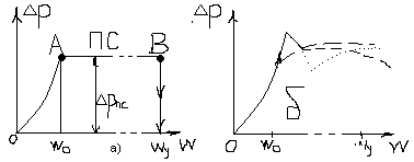 а б Кривые псевдоожижения: а-идеальная, б-реальная.