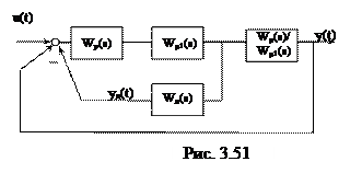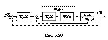 где а Расчет ведется следующим образом: на первом шаге определяются параметры дифференциатора, на втором шаге параметры основного регулятора. В отличие от обычной каскадной схемы настройки дифференциатора более чувствительны к изменению параметров объекта, поэтому существуют различные методики настройки таких систем. Рассмотрим методику Миронова В.Д. (методика ВТИ). Расчет настройки дифференциатора производится следующим образом. Структурную исходную схему преобразуем к виду на рис.3.51.