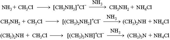 В основе этих превращений лежит реакция нуклеофильного замещения галогена в галогеналканах. Роль нуклеофила играют молекулы аммиака и аминов, имеющие неподеленную пару электронов на атоме азота.