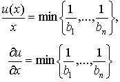 Следовательно, для функции (3.2.3) средняя и предельная полезности совпадают. Этот факт является следствием линейности функции u. Подтверждением служит функция полезности для взаимодополняющих друг друга товаров (см. (3.2.4)):
