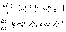 Для функции Кобба-Дугласа (3.2.8), полагая для простоты n=2, имеем: