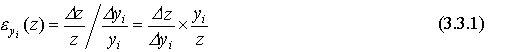 Видим, что "эластичность z по yi " вычисляется как произведение "предельной величины z по yi " на "среднюю величину yi по z ". Умножая числитель и знаменатель дроби (3.3.1) на 100%, получим
