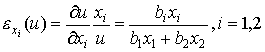 Можно показать, что для возрастающей функции (напр., предложения, как функции от цены) эластичность по абсолютной величине также будет равна отношению AN/AE. Потому в общем случае эластичность следует оценивать по ее абсолютной величине. Эта величина равна 1, если в (3.3.4) числитель равен знаменателю; больше 1, если числитель больше знаменателя и меньше 1 - если числитель меньше знаменателя. Это говорит о том, что эластичность Если Относительно спроса различают товары эластичного спроса и товары неэластичного спроса. Для товаров первого вида повышению цены на 1% соответствует понижение спроса более, чем на 1% и, наоборот, понижение цены на 1% приводит к росту покупок более, чем на 1% ( Вычислим эластичность некоторых из функций полезности приведенных в § 3.2 (для простоты будем полагать n=2). Для функции с полным взаимозамещением благ (3.2.3)