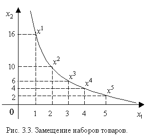 Из закона об убывающей предельной полезности следует выпуклость кривых безразличия (не путать с вогнутостью функции u) (см. (3.2.2)). Поэтому при движении вниз вдоль кривой безразличия (рис. 3.3) S12 убывает: