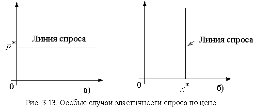 Имеется еще два тривиальных (особых) случая эластичности спроса по цене, показанных на рис. 3.13