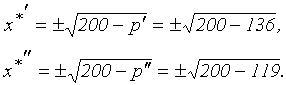 Отбрасывая отрицательные значения корней, как не имеющих смысла, найдем: