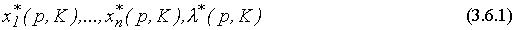 - есть "окаймляющая" ценами товаров матрица Гессе. По условию (3.2.2) матрица Гессе отрицательно определена (см. §2.3) и поэтому невырожденна. Следовательно, определитель матрицы Якоби не равен нулю, и система (3.6.2) имеет решение (по