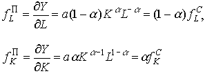 в случае производственной функции Кобба-Дугласа - в виде мультипликативной функции