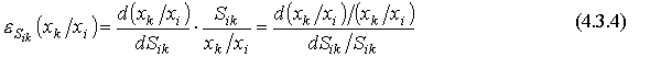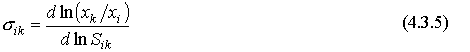 Предлагается читателю самостоятельно вычислить предельные нормы замещения и провести их анализ для производственных функций (4.2.5)-(4.2.9). Из формул (4.3.2) и (4.3.3) вытекает взаимосвязь между эластичностью и предельной нормой замещения: для любых i и k