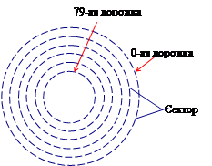 После форматирования гибкого диска его параметры будут такими: < сторон – 2 < дорожек на одной стороне – 80 < количество секторов на дорожке – 18 < размер сектора – 512 байтов (0,5 Кбайт) Общая ёмкость гибкого диска: количество секторов 2×80×18=2880 2880×512=1474560 байт=1440 Кбайт (1,44 Мбайт) Ёмкость доступная для записи данных: количество секторов 2880-33=2847 2847×512=1457664 байт=1423,5 Кбайт (1,39 Мбайт)