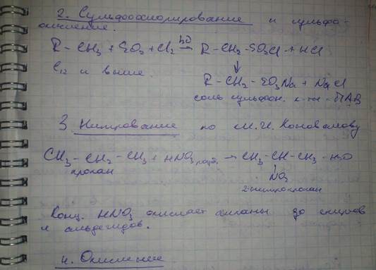 Галогенирование (см. картинку выше). Сульфирование. (Нашел в конспектах сульфохлорирование) и нитрование.