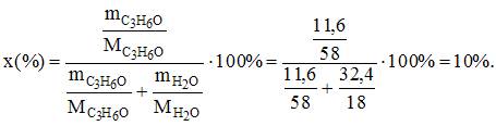 Мольная доля ацетона в растворе, полученном при смешении 11,6 г ацетона и 32,4 г воды, составляет _____ % (с точностью до целого значения).