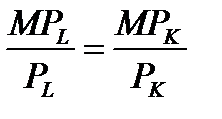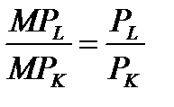 Точка касания изокванты с наименьшей из доступных ей изокост показывает минимально возможный размер совокупных затрат для заданного объема выпуска. Изокванта касается одной из изокост в точке М, в которой наклон изокванты и изокосты одинаковы. Условие минимизации издержек: