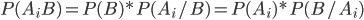 Формула (3.1) носит название формулы полной вероятности. Пример. Для рассмотренного выше случая с поступлением товара в магазин от трех предприятий зададим численные значения. Пусть от первого предприятия поступило 20 изделий, от второго — 10 изделий и от третьего — 70 изделий. Вероятности некачественного изготовления изделия на предприятиях соответственно равны 0,02; 0,03 и 0,05. Определить вероятность взятия некачественного изделия. Решение. Вероятности событий P(B) = 0,2×0,02 + 0,1×0,03 + 0,7×0,05 = 0,042. 10.Формула Бейеса. Пусть событие На основании теоремы о вероятности произведения двух событий можно написать