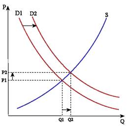 Поиск «точки равновесия»: изменение цены (P) и количества товара (Q) как следствие изменения спроса (D) и предложения (S)