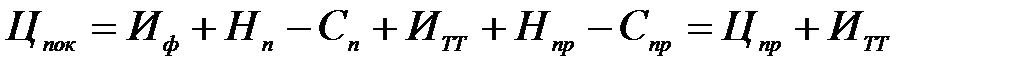 ЧНПИ – чистые налоги на производство и импорт Рыночная цена покупателя (Цпок) – в общем виде отражает фактические затраты пользователей на приобретение товаров и услуг. Цена покупателя включает помимо цены производителя акцизы, сборы, торгово-транспортные издержки по доставке и реализации данного товара и т.п. Она может быть рассчитана по формуле