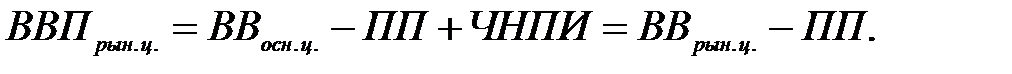 Если нужно определить ВВП в рыночных ценах, то необходимо добавить чистые налоги на продукты и импорт (ЧНПИ), т.е.