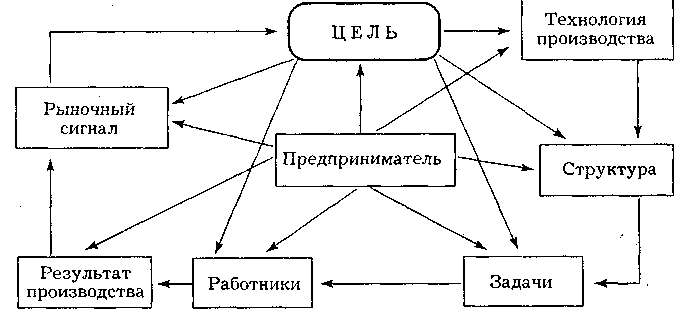 Рис. 2. Такое утверждение ошибочно, ибо невозможно представить предпринимателя, не воздействующего на внутренние переменные, а в этом-то как раз и заключается содержание предпринимательской деятельности. Таким образом, место предпринимателя — внутри фирмы (рис. 3).