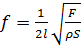 В фортепиано, скрипке, гитаре, арфе и других музыкальных инструментах звук возникает в результате колебания струн. Эти колебания могут возбуждаться щипком, смычком, или ударом. Если: f — частота колебаний (Гц), l — длина струны (м), F — сила натяжения струны (Н), ρ — плотность материала струны (кг/м³), S — площадь поперечного сечения струны (м²),