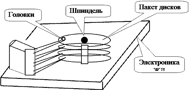 Накопители на магнитных дисках: жесткие и гибкие. Состоит из дорожек (треков),на кот. записывается инф-я. Каждый трек делится на сектора(512 байт). идет к секторам. Кол-во дорожек зависит от плотности записи. В жестком диске несколько магнитных дисков. В начальном секторе диска – таблица расположения файлов(имя и номер сектора)FAT или NTFS.Каждая ячейка памяти- область намагниченности. Головки не касаются диска,который крутится со скоростью 7000об/мин. Контроллер ж.д. перемещает магнитные головки к FAT.ОС считывает таблицу, ищет свободный сектор. ОС генерирует команду установки головок над соотв. дорожкой для записи или считывания. ОС через контроллер ж.д. возвращает головки в зону таблицы, сохраняя изменения.
