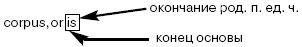 Полную форму род. п. ед. ч. у таких существительных находят следующим образом: corpus, =oris (= corpor – is); foramen, – inis (= fora‑min – is). У таких существительных практическая основа определяется только из формы слова в род. п. ед. ч. путем отбрасывания его окончания. Если основы в им. п. ед. ч. и в род. п. ед. ч. совпадают, то в словарной форме указывается только окончание род. п., а практическая основа в таких случаях может быть определена из им. п. ед. ч. без окончания.