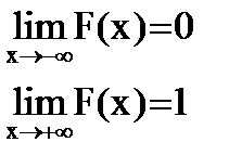 Свойства: 1) Все значения отрезка принадлежат от 0 до 1 0≤F(x)≤1 2) Функция распределения является неубывающей 3) Если все возможные значения случайной величины x принадлежат бесконечному промежутку (-µ;+µ), то Следствие Если X – непрерывная случайная величина, то вероятность того, что она примет одно конкретное значение равна 0. Вероятность того, что случайная величина примет значение в интервале (a;b) Ì [a;b] равна разности значений её функции распределения на концах этого интервала: P(a<X<b)= F(b)-F(a) О. Плотностью распределения вероятностей непрерывной случайной величины X называется производная её функции распределения вероятностей f(x)=F’(x). Если известна плотность распределения, то функцию распределения можно найти по формуле: