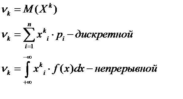 Начальные и центральные моменты Начальные и центральным момента k случайной величины X считается математическое ожидание величины X в степени k: