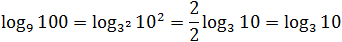 Поскольку от перестановки множителей произведение не меняется, мы спокойно перемножили четверку и двойку, а затем разобрались с логарифмами. Ответ Задача Найдите значение выражения: log9 100 · lg 3. Решение Основание и аргумент первого логарифма — точные степени. Запишем это и избавимся от показателей: