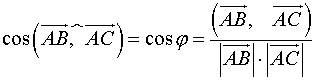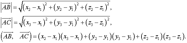 2. По формулам длины вектора и скалярного произведения векторов находим