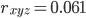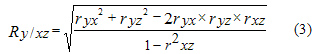 Этот коэффициент также изменяется от -1 до +1. При наличии нескольких переменных рассчитывается коэффициент множественной (совокупной) линейной корреляции Пирсона. Для трех переменных x, y, z он имеет вид