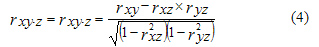 Каждый из коэффициентов детерминации изменяется от 0 до 1 и оценивает степень вариационной определенности в линейной взаимосвязи переменных, показывая долю вариации одной переменной (y), обусловленную вариацией другой (других) — x и y. Многомерный случай наличия более трех переменных здесь не рассматривается. Согласно разработкам английского статистика Р.Э. Фишера (1890-1962), статистическая значимость парного и чистого (частного) коэффициентов корреляции Пирсона проверяется в случае нормальности их распределения, на основании